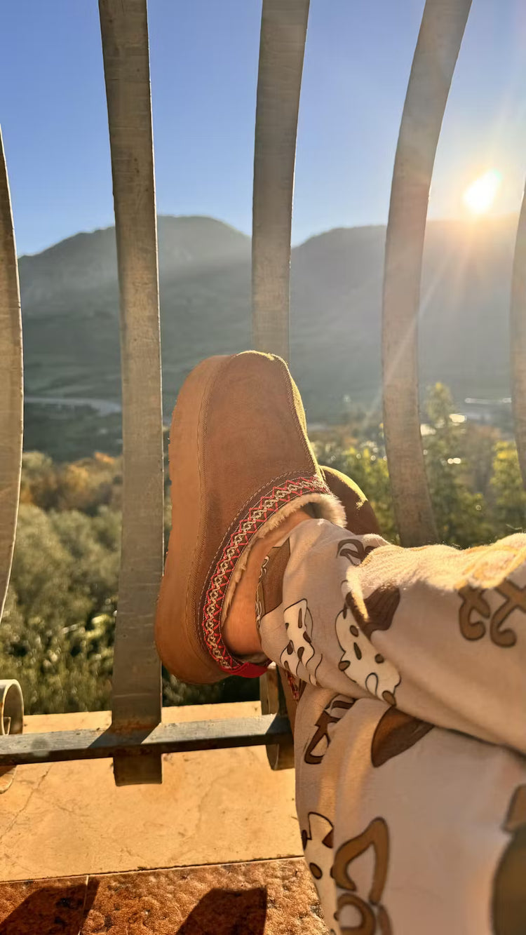 Il colore caldo e i dettagli curati rendono queste pantofole non solo comode, ma anche di tendenza.